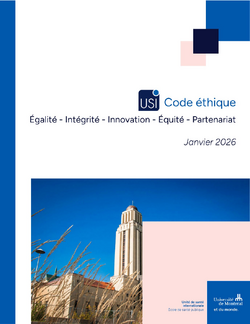Le Code d’éthique précise la mission, les valeurs et les principes que l’Unité de santé internationale (USI) entend appliquer dans chacune de ses actions, que ce soit au siège social ou dans les différents pays où elle est amenée à travailler. La direction, le personnel, les stagiaires, les consultantes et consultants et toutes les personnes amenées à collaborer avec l’USI s’engagent à respecter le présent code.
